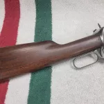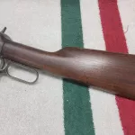 The bluing on barrel, magazine and lever is approximately 75% and the receiver is 20%. Barrel is 26” with a 2/3 magazine, and the muzzle looks excellent. The metal is excellent with no dings, scratches, etc. There is no rust or corrosion evident. A few rub marks on the right side of action. Sights are in excellent condition and period correct. Bore is clean and does not appear to have seen black powder, there is no corrosion, it’s nice and shiney, with rifling in good condition. Screws have been used but are in very good condition. All lettering and the serial number are crisp and clear.