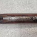 The butt stock is near perfect, the forend has two hairline cracks that had been professionally repaired at one time, probably when rebarreled. The finish is period correct. Original curved steel recoil butt plate is in place.