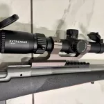 You can choose from a long eye relief scout scope with offset scope mount that is mounted to the front rail.