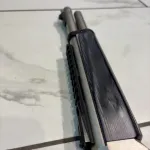 Morrison mares leg with threaded barrel, laminate grey wood finish with a picatinny rail built in for optics.