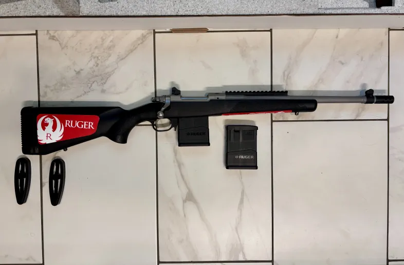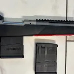 Brand new in the box. Ruger Gunsite Scout rifle with the stainless steel action and barrel in a black synthetic lite weight stock.
