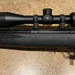 Scope is Vortex Crossfire 2 3-9x40 with illuminated red dot with 11 different brightness settings. Sits on Weaver bases & rings.