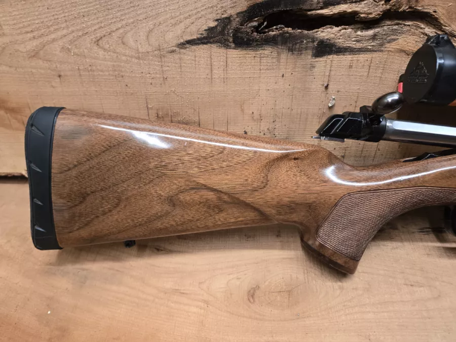 Gun has a few small depressions in stock from safe. Has successfully harvested an adult cow moose. Gun is sighted in for Federal Premium 180gr Nosler Partition 100 yard zero.