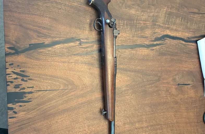 NO TRADES. One of the higher optioned BSA factory 30-06 Sporters built on the Enfield 1917 action. They were built with: updated front sights, recontoured action, drilled and tapped for scope mounts as well as peep sight, floor plate reshaped, bolt handle dog leg replaced, and an updated walnut stock. Not very common version versus the plain BSA sporters out there. Nice bluing on this one, excellent bore. Shoots and functions A1. No cracks in the stock. Factory BSA butt plate. Rear peep sight included but no sight aperture. Rear barrel mounted sight replaced with a Marble’s slot filler. Numbers matching. This is about old school steel and walnut/last for generations rifle you can get. $500 FIRM PLUS ACTUAL SHIPPING. PAL will be validated online with the CFC. Local pick up may be possible in Oshawa at the 401. I will be at the Orangeville Gun Show Dec 7th.