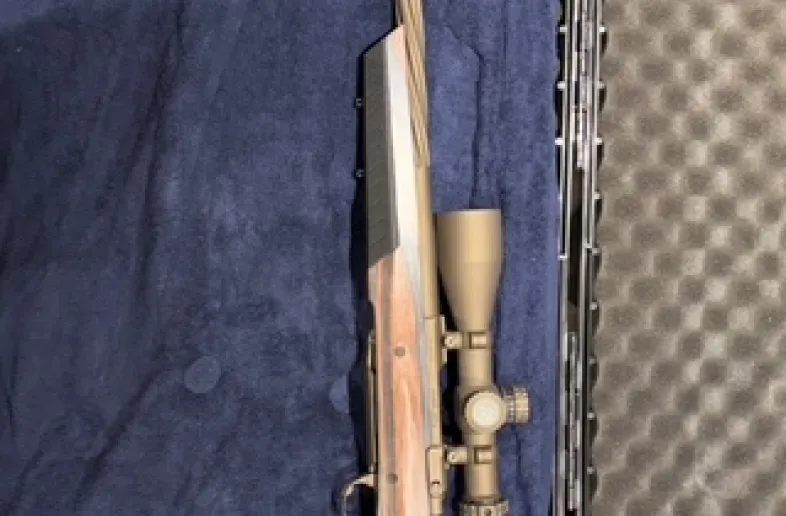 It is a Ruger M77 action that has been machined and paired with an IBI, 1-12 twist, fluted, bull barrel and a Nightforce 4-32 scope that has been cerakoted to match the barrel and action. This would be an amazing coyote killer or range gun.