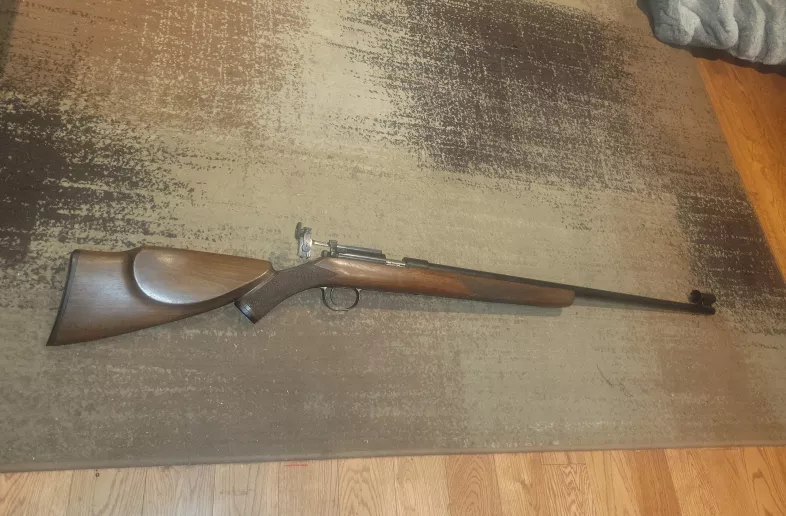 This is a rare left hand model 52 custom with heavy barrel i do not believe it to be all original but the bore is excellent action is smooth as silk and the trigger is very nice and crisp its a single shot target gun. Can't find any markings on it . But it's a nice rifle the stock is nice with very little blemishes found on it and checkering is amazing try your offers. Can do payment plans if serious I'm definitely not a winchester professional or historian if you know more than me please feel free to educate me more thanks for your time