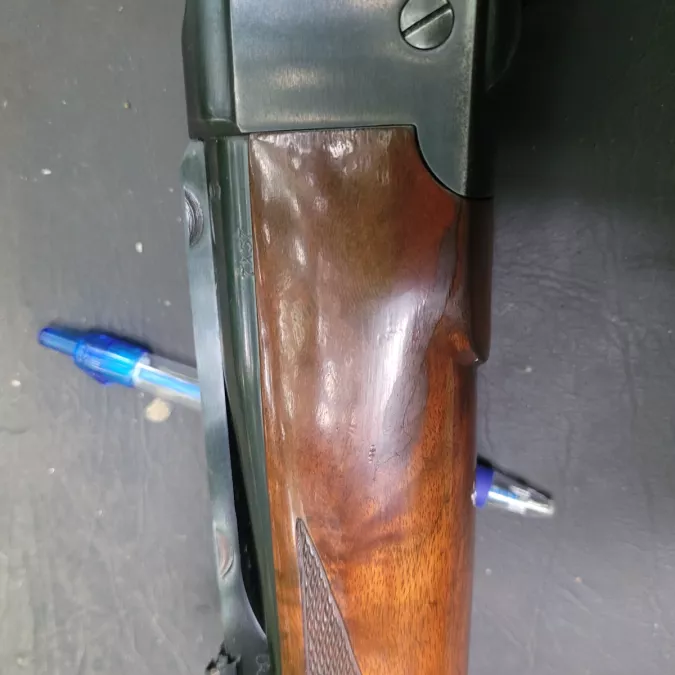 In good condition with some minor bumps on the wood and some bluing wear at edges/high spots, as to be expected for a rifle this age that's been hunted. Original red recoil pad. Small crack in foreend that has been repaired. Will include rings. Shipping extra. PAL will be verified as per our overlords current rules.