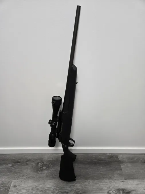 Savage axis in 7mm-08 compact. Scope is a vortex viper 3-9x40mm. Never hunted with, bought for wife and found a 308 she likes more so this one goes. I have an assortment of ammo that could be worked into the deal as well as some reloading components (dies, bullets, brass).