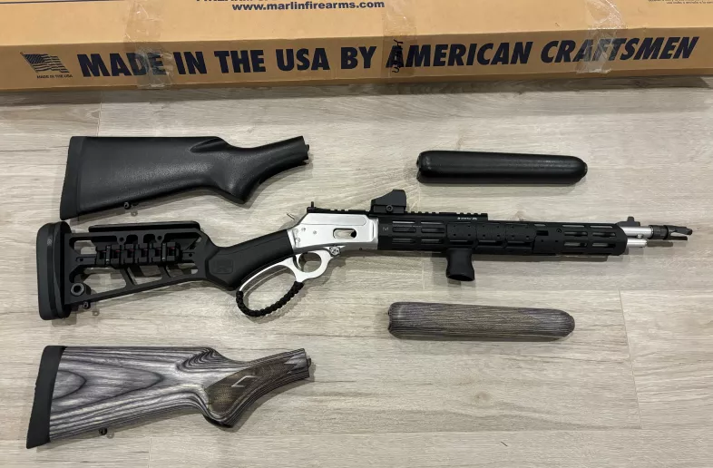 Marlin 1854 CST 357mag in great condition. Smooth action. Replace and sold the black Wood for the gray laminated Wood from the trapper model. The CST is one of the best marlin gun.