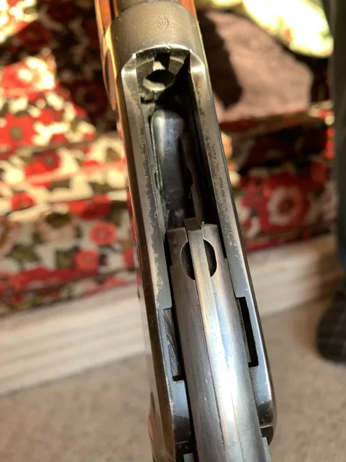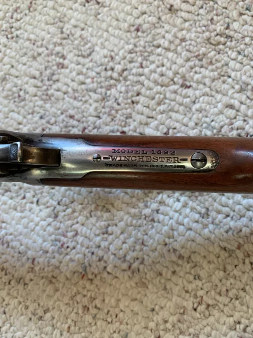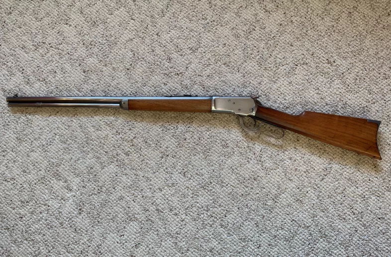 Winchester Model 1892 in 25-20 WCF. Walnut stock, with crescent butt, blued, tube feed, lever action, forend cap, iron sights. Circa 1916.