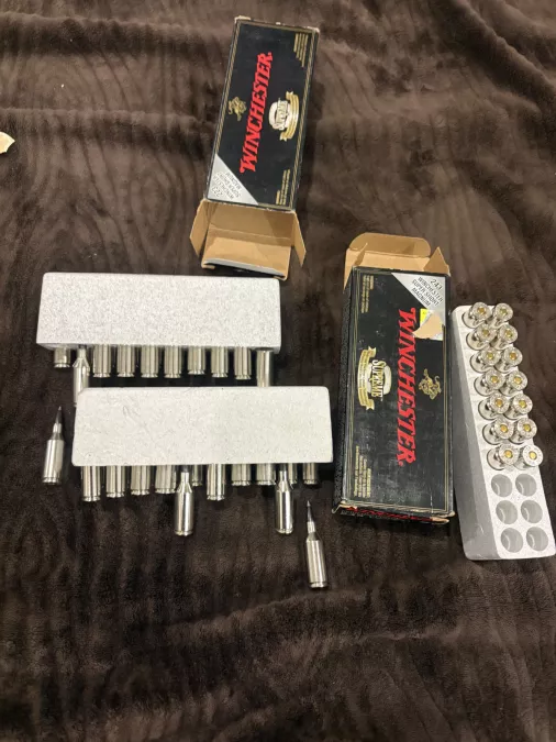 A beautiful browning a bolt 243 wssm which has fired less then 50 rounds and a really nice Nikon 4-12 40 scope. The wood does have a few minor dings but otherwise looks new. Will come with pictured components.3 boxes (minus 6 rounds) of ammo, 198 new Winchester cases, 35 once fired cases, new RCBS fl 2 die set, 1000 magnum load primers , 1 lb of varget powder, 350 projectiles and the factory manual. As pictured PAL required, Local pickup only package deal. WILL NOT sell 243 components separately but I would be willing to keep the powder and primers to reduce cost.