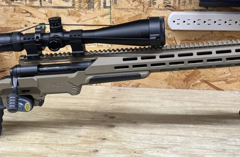 Savage 10TSR heavy barrel, mdt Muzzle brake, 18” forend, 20moa rail, Ergon grip. Does not include optic, rings, bipod or carbon fiber inlay.