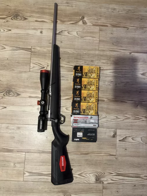 Selling my like new Savage axis xp 22-250 stainless, less then 20 rounds down the pipe since new . Come with a scorpion red hot varmitter 4-16x44 range dial shoot scope Can come with 6 boxes of shells for 1400 or 1000 gun only! Located in Griffith can meet or ship
