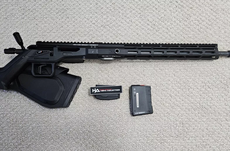 This rifle has had its magwell replaced under warranty, which should correct the feeding issues early Hera H6s had. Will include original magwell as well, in case you want it for some reason. Also includes original velcro Hera Industries patch and original 5-round short Hera magazine.