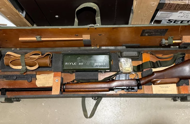 Original L42A1 British sniper rifle in its chest with complete EIS