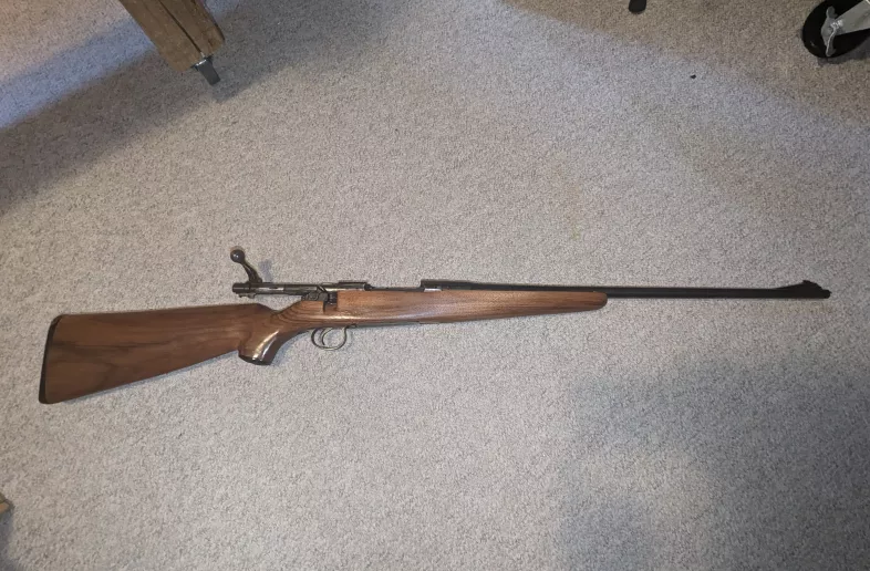 Carabine bsa 1917 sporter en calibre 3006. Etat du bleu est grafigné la crosse est neuve. L'action est percé pour recevoir des montures