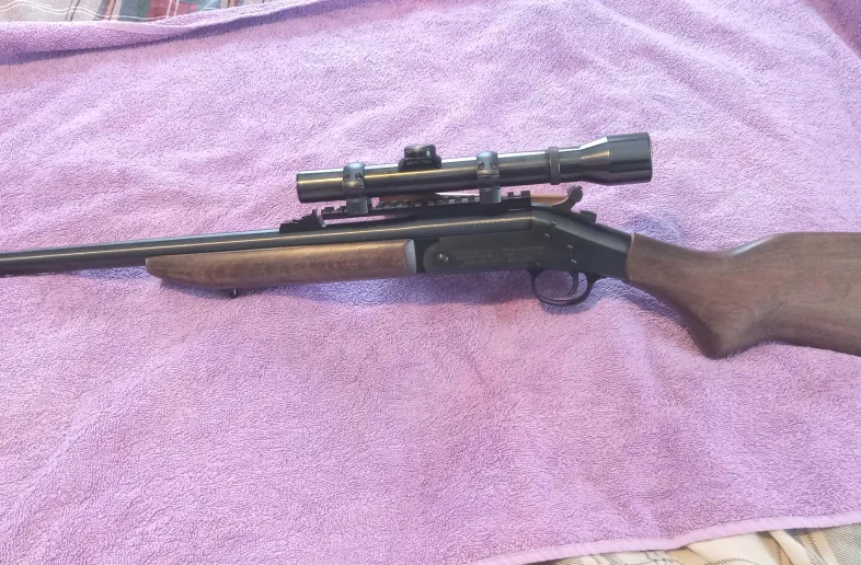 This single shot break-open rifle looks like new, both inside and out, as can be seen in the photos. It has fired about one box 170 grain test rounds producing consistent 2” groups at 100 yards with a scope, so perfectly good for deer or moose hunting at normal ranges. It’s a tidy little gun. Very safe because of its simple fail-safe design. Thus it is perfect for a beginning hunter who will learn that "first shot counts". Also these are much admired by the single-shot advocates. Time has shown that these rifles utterly reliable, if not unbreakable, weighing about 7 lbs. It has a 22” barrel, a length of pull of 14” and a hunters trigger pull, with a crisp let-off, of about 4lbs.