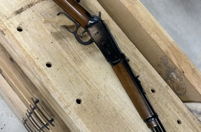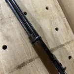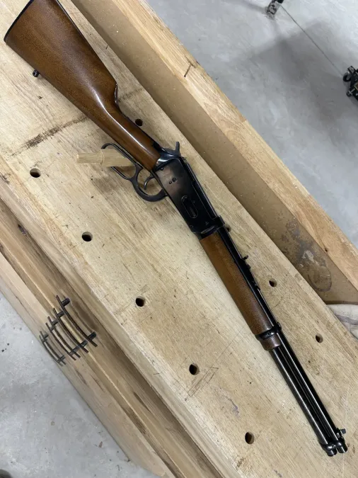 Well this was one of my project guns, the barrel was on a 94ae receiver originally. Then someone put it on a 94 top eject at some point. That is how I received it, issue was the receiver was marked .44-40. Which in my mind made it an unsafe gun. Let alone it did not feed well from the magazine tube. So I took it apart and made the rifle a .44-40 again. I then mounted the barrel on a 1892 receiver, but still feed issues. So I mounted the barrel back on a 94AE receiver and tracked down a new set of 45 colt feed guides. Feeding issues now good. Action is tight and shoots good. Barrel is 16 inches I do believe, real short ass. I also have 112 rounds of ammo going with the rifle and is included in the price.