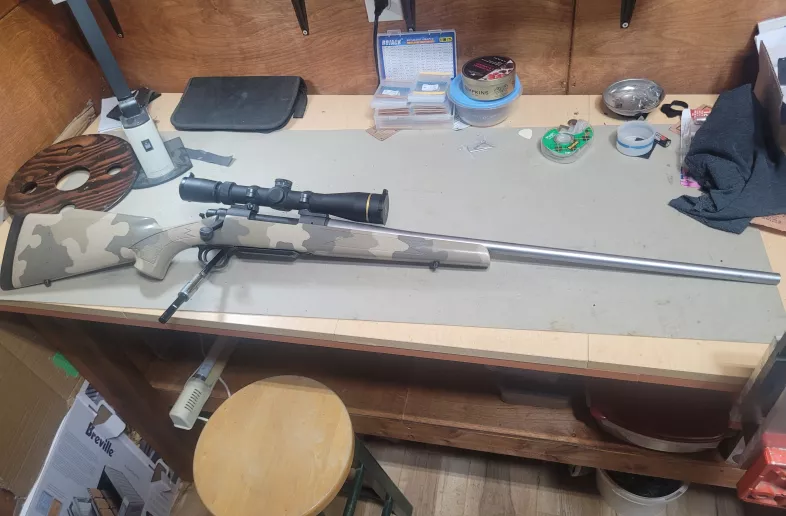 This is a 280 Ackley Improved (Nosler Specs) custom rifle. Put together in 2013. Aluminum bedded, 24" 1-8 twist stainless steel barrel by Ron Smith. Approx 250 rds thru it. Comes with Leupold VX-3HD 4.5-14x40 (side focus) with custom turret currently setup for the 168gr Berger VLD Hunting bullet at 2875MV. This rifle is in excellent condition. Barrel has always been cleaned properly after every outing. Comes with Redding Deluxe 3 piece die set, Box of brand new Nosler brass (50 count) as well as used brass, box of Berger 168 VLD Hunting bullets, part box of Accubond 140gr. and some loaded ammo suited to the custom turret.