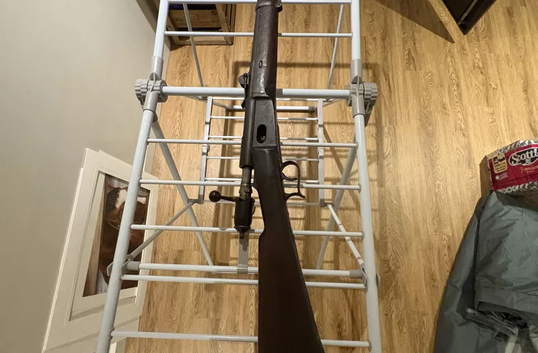 Minus the fore stock crack and needing a good clean the bore still have pretty good rifling and would have no issue firing, bolt runs smooth. Comes with one single 41RF round lol