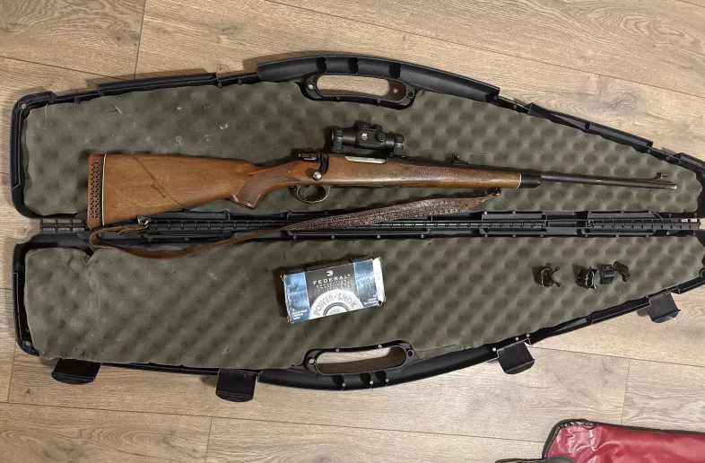 Interarms Mark x 300 win for sale, hinged floor plate, iron sights, rubber shoulder pad, metal plate on grip is missing but grip feels great without it, gun is in good shape, cones with sling, peak threw scope rings and NcSTAR 1x30 red dot, 700$, located in Sudbury no shipping