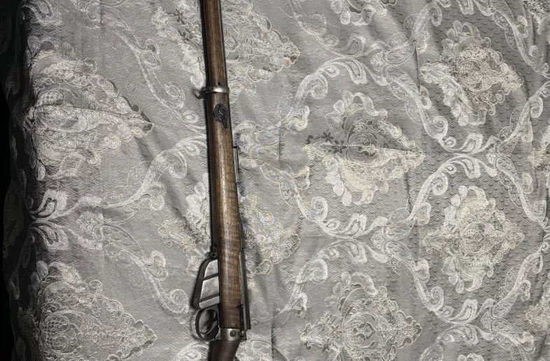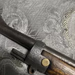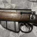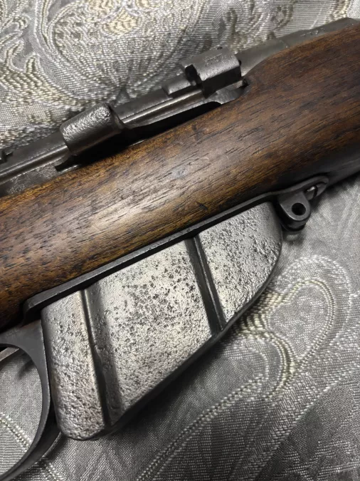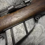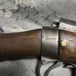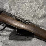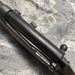 The bore is worn but shootable with no pitting. The stock has been sanded… and then sanded again. I was going to restore it but I don’t have the time this rifle requires. The trap door in the butt is missing as well as the magazine spring /floor plate. I’ve shot this rifle with a different magazine and it cycles well.