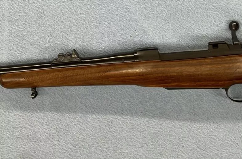 N.O.S. re chamber to 458 lott with a new reamer. Feeding and extraction perfected. Action bedded, bolt handle hole filled. Comes with all factory accoutrements. Test target from factory is 5/8". All work done by Gary Flach.