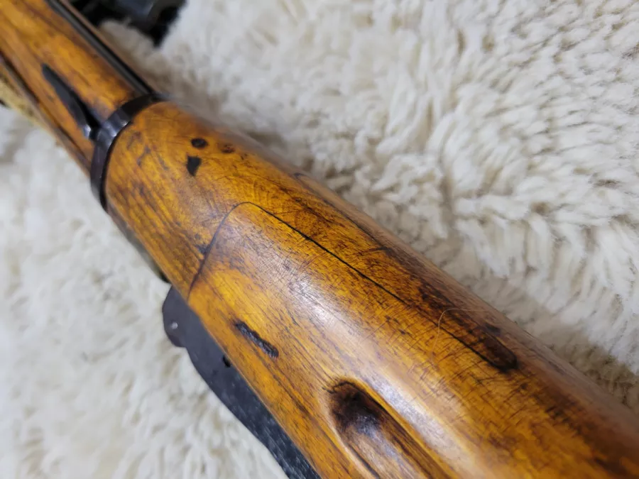 The "finger-shaped tip mortices," or finger joints, are a feature of some Finnish Mosin-Nagant stocks, particularly those that were manufactured or refurbished during the war years (pre- or during WWII). This was a common method used by the Finns to splice a new fore-end onto an existing or repaired stock, often to accommodate different barrel lengths or to repair damaged stocks.