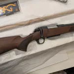 It has a very nice looking and quality walnut stock with a soft recoil pad. The free floated barrel is 23" long.
