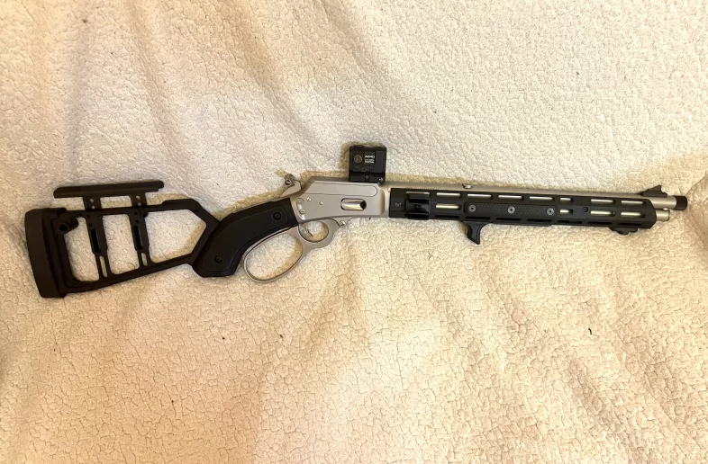 Excellent condition 1894 in 44 Magnum with Midwest furniture and Rangerpoint Quiver. Will come with original Grey laminate furniture. Acro and rail scales not included. Price is OBO