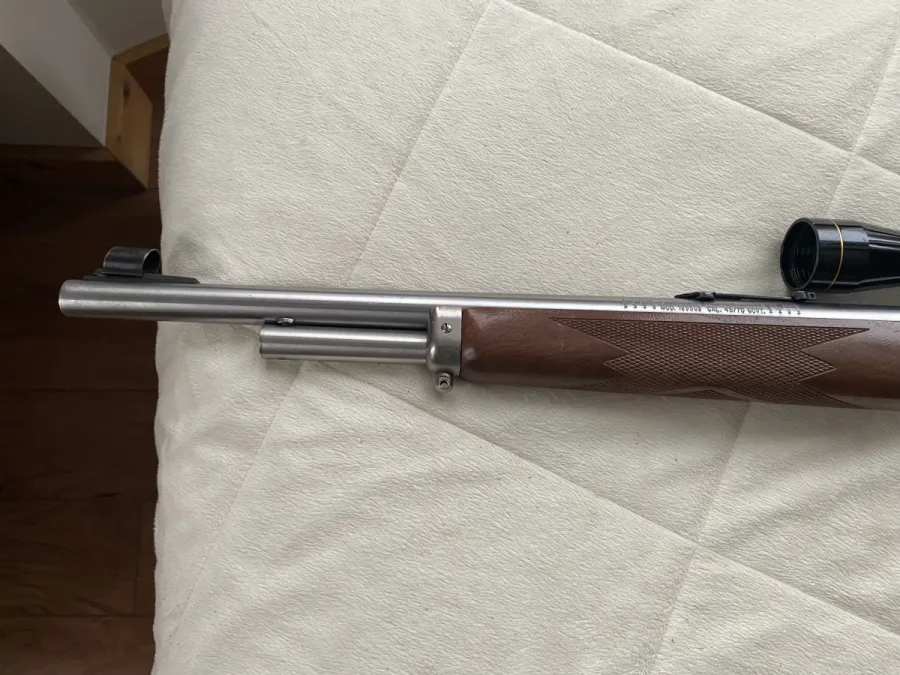 Selling my 2006 Marlin 1895 GS with a scope and a medium loop. Original loop and ramp for rear buckhorn along with action screws are still here. Been a great rifle. Very durable gun with very little cosmetic damages. Stainless receiver has a couple marks on it. Has Tally rings and a Leupold vari-X ll 2-7 power. RPP medium stainless loop installed. Price is firm. PAL verification and shipping on buyer. $1800 for bare rifle with original lever and iron sights.