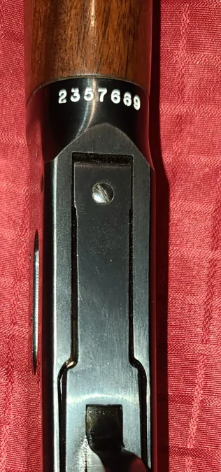 A Safe Queen Winchester Model 1894 in 30-30 Win. Winchester ledger notes show that SN# 2357669 was built in 1958. Original Bluing is 95% or better condition and Stocks show a few Gun safe kisses. Erosion gauges won't even reach zero, so I'd be shocked if this rifle has seen 100 rounds... I don't think it has seen 50 rounds. Original front sight hood is still in place and rear sight is Semi-Buckhorn
