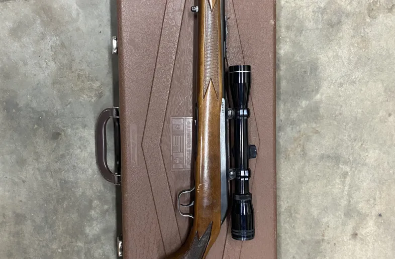 Good shape Lakefield 64 with two mags and tasco fixed power scope. In good shape but has same minor rust spots and dings on the stock.