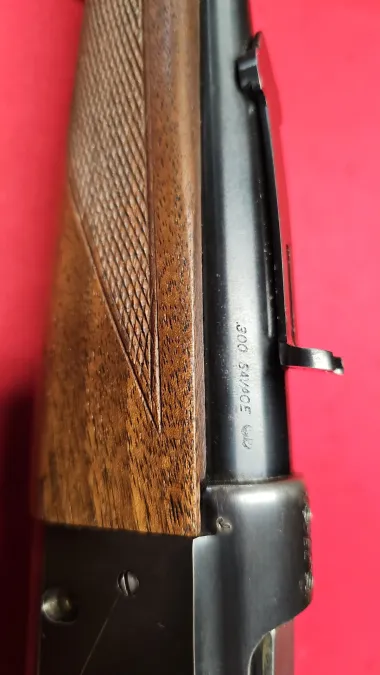 up for sale the best lever gun for years the Savage model 1899 or the 99 in 300 sav very close to 308 performances . very good condition metal blue is great with some hunting scratches the wood is solid with crack at all a blemish at the end of the forearm that been reglued brass rotary magazine 24 inches barrel shinny bore drill and tap for scope .