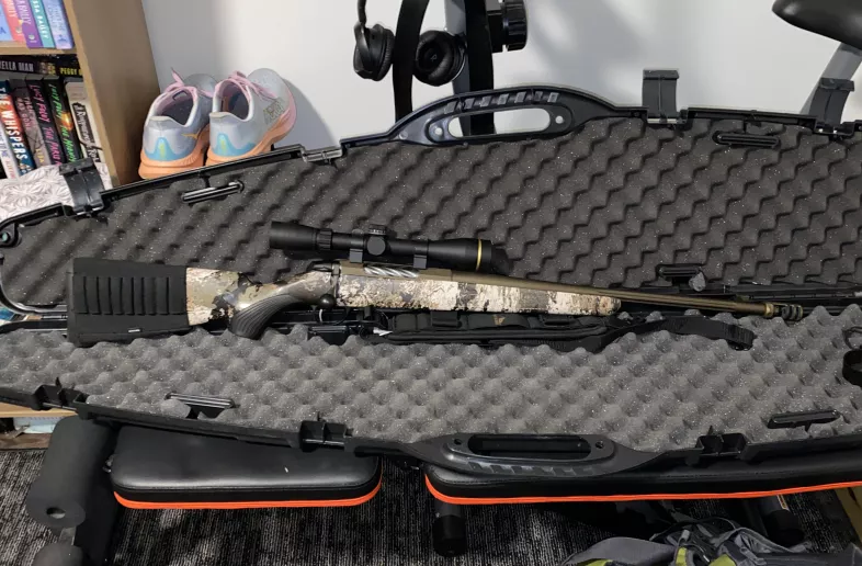 Tikka t3x wideland veil chambered in 30-06 with or without the talley low rings and a leupold VX freedom 3-9x40 with the CDS system and a custom dial installed for hornady super performance SST 165grain bullets.