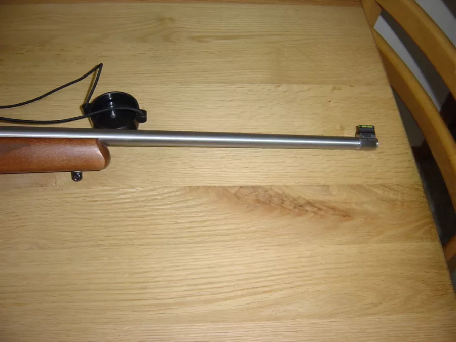 THIS IS THE DELUXE STAINLESS MODEL, WITH THE CHECKERED STOCK . ONLY ABOUT 10 SHOTS THRU IT ! HAS A CABELA'S 3X9X40 SCOPE ,RINGS AND BASE.