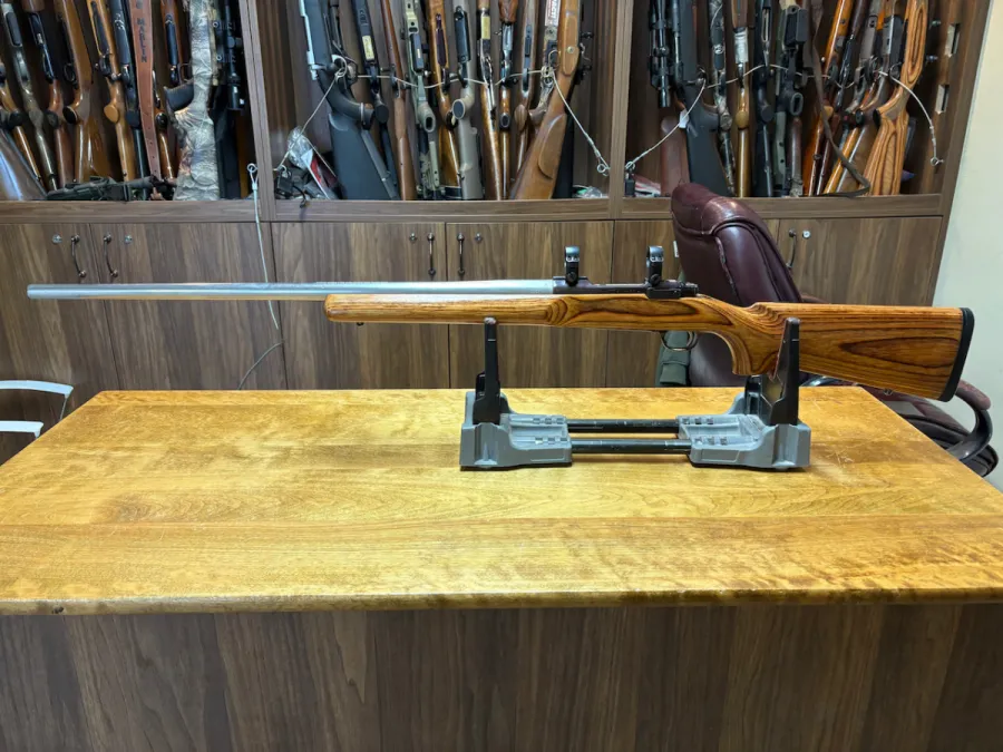 Selling/trading a Ruger M77 Mark II HB 22-250. Overall it's in nice shape. Made in 1992, 26" heavy stainless barrel. Steel is in good shape, has some light marks and scuffs along the barrel. Bluing on the receiver is very nice. Laminate target stock is also in good shape, has some normal marks and scuffs. Bore is very nice. Comes topped with a set of 1" rings. Looking for $1295 shipped. Insurance by request on buyer. Open to all trades. Can send more pictures upon request. Pm or text/call 204 795 2850 for more info.