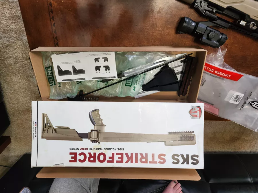 1953 Russian Tula SKS. Has a.t.i strike force adjustable/foldable stock, kodiak advanced system rail, vortex strikefire2 red dot and 2 archangel 20 round(pinned to 5) push button release mags. All the original parts are also included such as stock, bayonet, mag ect. Stock has the cleaning kit included. All numbers matching except for mag. Comes with 80 rounds of copper cased non corrosive rounds and case. All parts put on gun have lifetime warranty.