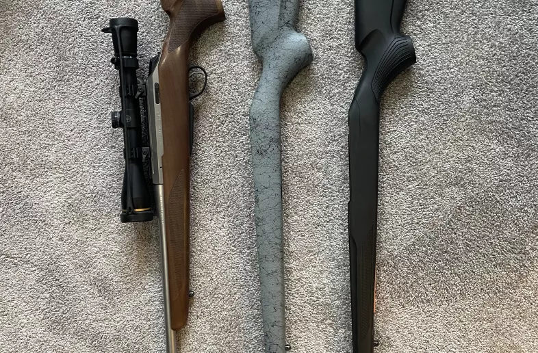 Listing my like new Tikka T3x stainless .30-06. I have shot approx. 20 rounds through this to get this setup. I purchased the wood forest stock through Stoeger (over $700). I also have a Bell and Carlson stock available $500. Rifle was $1200 plus tax new. Original stock is here as well. Has a picatinny rail on it with Leupold QRW 1” rings. Scope is a Leupold VX-3HD 3.5-10x40. Seems to work good with the Remington cor-lok tipped 150 grain factory loads. I’ll be using my Mark V .270 Weatherby Mag instead.