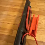 The (very rare in Canada) orange SpeedFeed stock set with rare orange SureFire forend flashlight (comes with 2 forends, the stock speedfeed one and the surefire one) holds 4 extra shells and designates this gun as a “Less Lethal” shotgun.