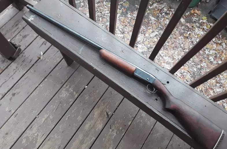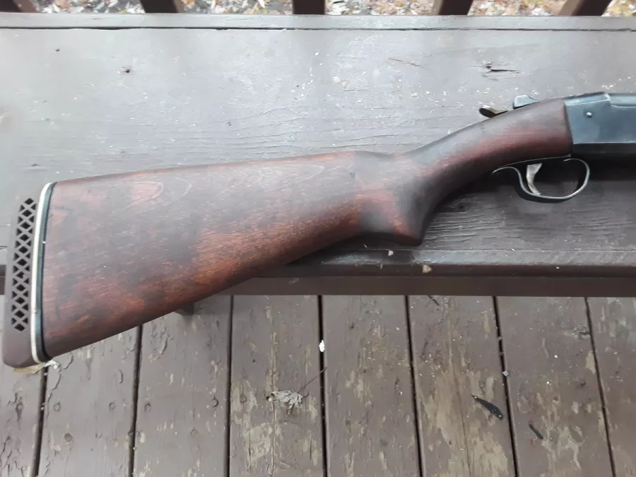 Attention COLLECTORS! Very old 12-gauge Winchester Model 37 shotgun, 2 3/4" chamber, 30" full barrel. The metal is in good condition, but the black finish is faded due to age. The stock is nice but has a small chip, as shown in the photo. The shotgun is functional. $300. Cell: 514-943-4033