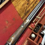 Cased Cogswell and Harrison. Gun is in very good condition. Factory original 3 inch nitro proof gun. Barrels are in excellent condition. Bores are crystal clear and shiny. They have the original inside bore diameter and both barrels are full choke and 30 inch long. Not a scratch or ding anywhere on the barrels.