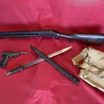 First employed in WWI, this is the legendary “trench sweeper” that was used by allied armies to attack enemy trenches and to shoot down grenades. The 1897 was so reliable, it went on to be used in WWII, the Korean War, and Vietnam (this particular unit was sold as surplus long after all 4 wars and may have served in all of them).