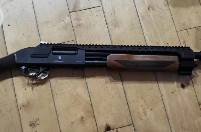 NEW RADELLI GATEKEEPER 12GA PUMP ACTION SHOTGUN 2 ¾” & 3" CHAMBER, WOOD STOCK WITH A 15.5" BARREL 30.5” OVERALL LENGTH WITH THREAD IN MUZZLE BRAKE. CAN ACCEPT INTERCHANGEABLE CHOKES (ONLY COMES WITH MUZZLE BRAKE - NO OTHER CHOKES INCLUDED). PICATINNY TOP RAIL WITH HEAT SHIELD AND QUAD ACCESSORY RAIL TO THE MUZZLE. IT ALSO INCLUDES RAPTOR GRIP AND “PIG STICKER”. THIS IS A NON-RESTRICTED FIREARM. EXCELLENT CONDITION 10++ .