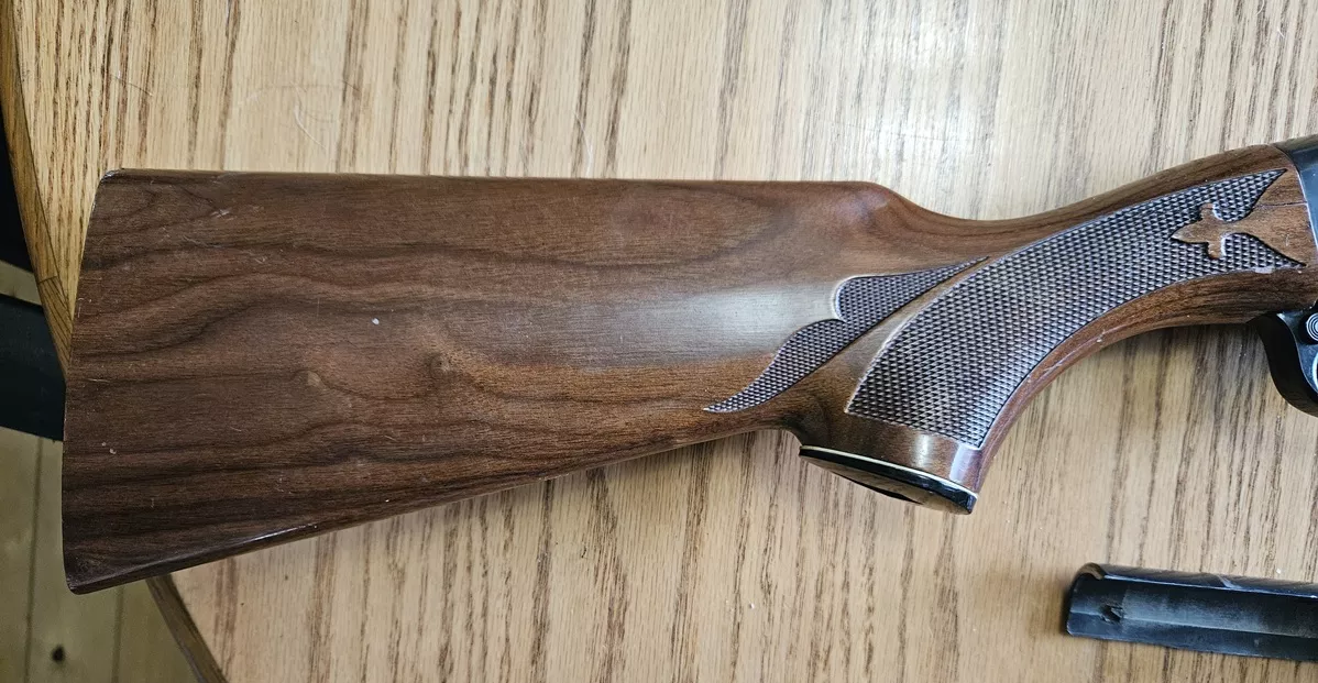 NON-RESTRICTED, SEMI-AUTOMATIC, 12 GAUGE 2 ¾”, 27", MOD CHOKE VENT RIB BARREL INCLUDING A LYMAN CUTTS, MODIFIED CYLINDER CHOKE. THE FIREARM IS MECHANICALLY SOUND, AND THE OPERATION IS SMOOTH AND TIGHT AS IT SHOULD. THE WOOD HAS SOME LIGHT SCRATCHES AS WELL FOR ITS AGE. THE BLUING IS VERY GOOD TO VERY GOOD, AND THE BORE IS BRIGHT AND IN EXCELLENT CONDITION. THE BUTT PLATE IS MISSING, SO YOU CAN INSTALL YOUR OWN FAVORITE RECOIL PAD.