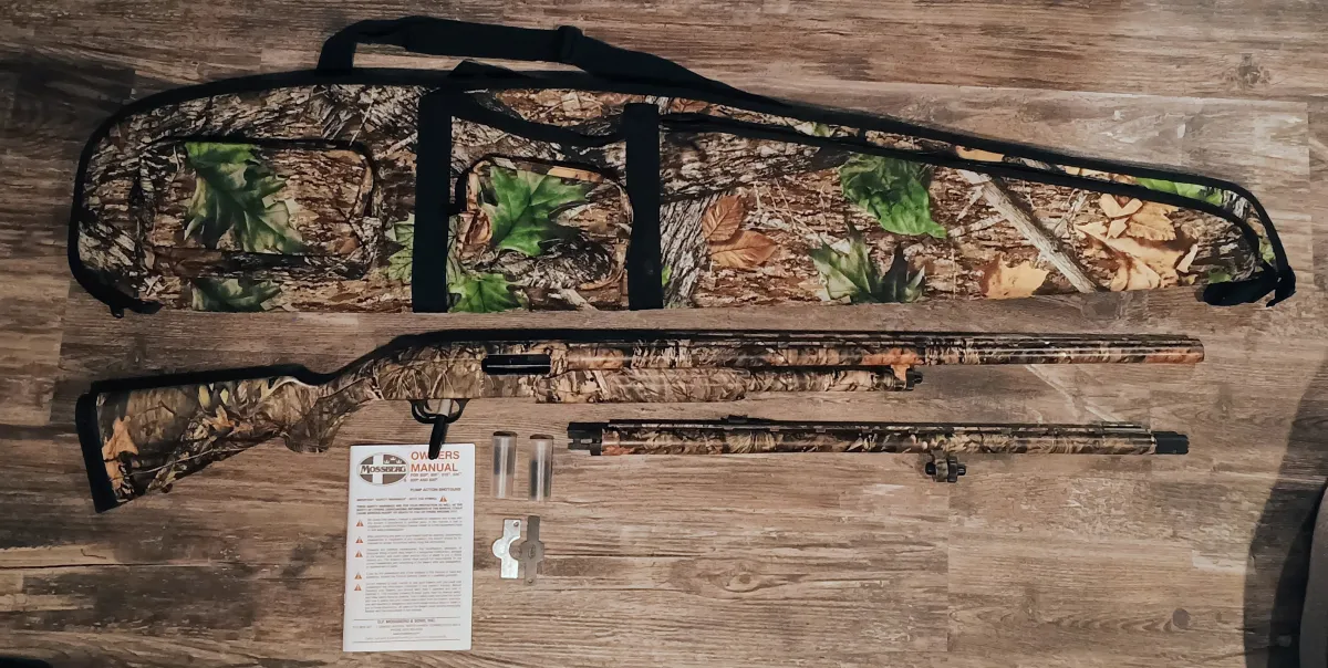 LIKE NEW Mossberg 500 Field & Turkey 12 GA Mossy Oak Camo + Accessories