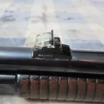 30” barrel, Mossberg detachable full choke installed (.670), barrel must have been cleaned up and reblued at one time as it looks new, previous owner epoxied fine William’s fiber optic rifle sights on the barrel, original bead still present, refinished the buttstock and installed a Decelerator recoil pad.