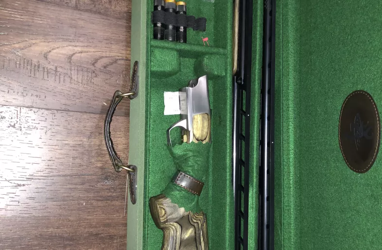 Comes with two extra trigger shoes (still sealed), factory chokes, and the original hard case.