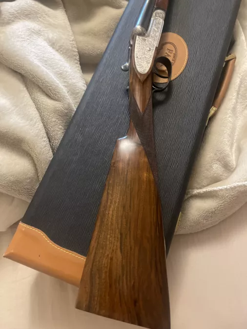 Ungartechea 20ga 3” 28 inch barrels m/ic chokes fixed ,double triggers engraved 257 s xs side lock in fitted case aaa walnut English grip