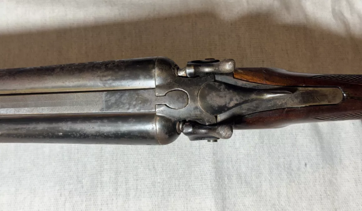 Rusty and only one hammer works. Stock is cracked and a little loose. good wall hanger or parts/project gun.